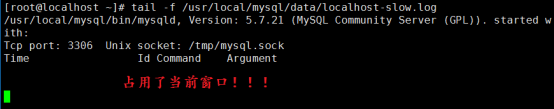 参数 : -f 是打开文件,占用当前窗口,只要文件有新内容从尾部插入,就立即展示出来。
