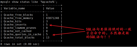 Qcache_free_memory :可以使用的空间,即剩余空间
